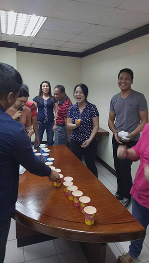 On the day itself, it was a harried and busy time for everyone, as HRD tried to strictly follow the checklist of activities and requirements to ensure a smooth program flow. PAI’s QMS Manager--Sir Abner, served as the bubbly master of ceremonies (emcee) inside the conference room that provided a conducive venue for a corporate gathering such as this. It started off with an invocation led by Clayton followed by the usual greetings and best wishes to the birthday celebrators. Next in line was the tricky “minute-to-win-it” game that tested the participants’ patience and ingenuity to the max and back--and these are the sort of events that really promotes bonding, teamwork and camaraderie amongst TMs.